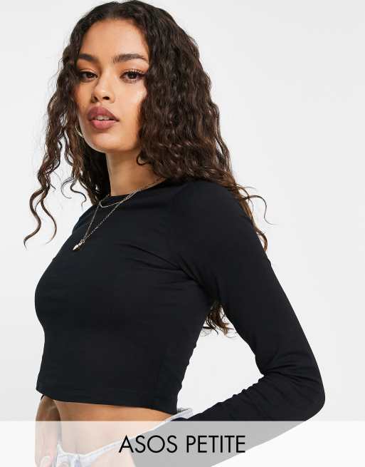 ASOS DESIGN Petite T shirt corta aderente a maniche lunghe nera Very well made.